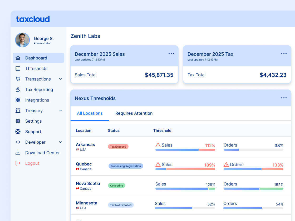 Handle Canadian and U.S. sales tax in one place. TaxCloud supports cross-border sellers with accurate tax calculation, filing-ready reports, and hands-on support.